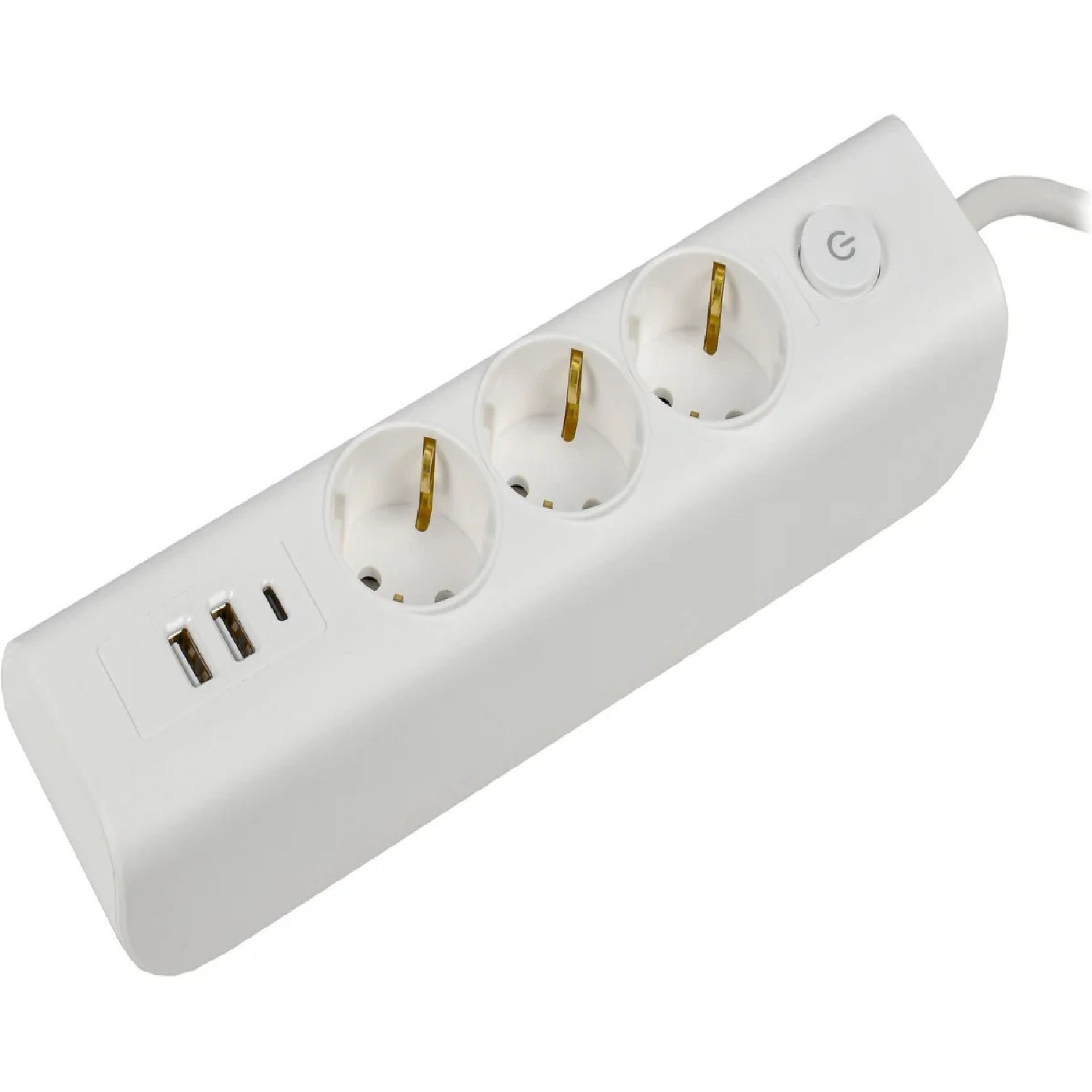 Сетевой удлинитель 3м 3мест (2 USB+Type C порт) 16А с з/к ЕВРО с ВЫКЛЮЧ 3*1мм2 |