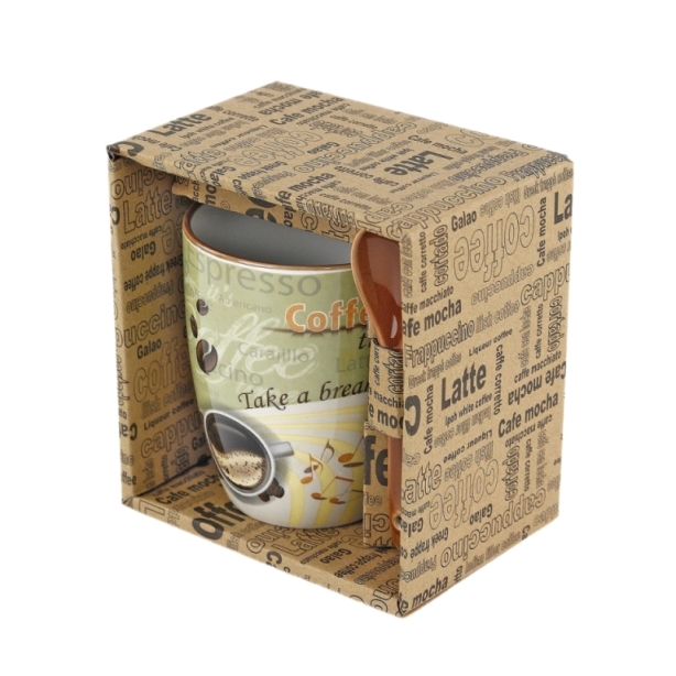 Кружка 340мл бочка с ложкой "Кофе арт" R03H/1678J