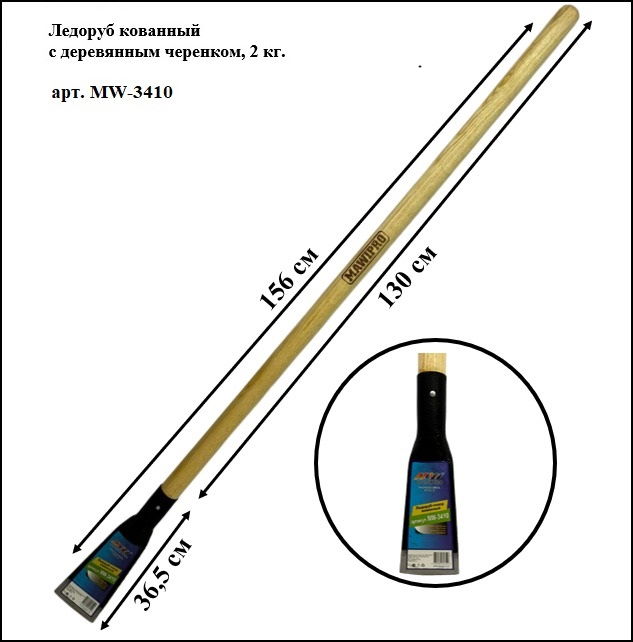 Ледоруб кованый ЛЮКС 2,0кг (100*355мм) с дер.лак.рукояткой, MW-3410 (6) |