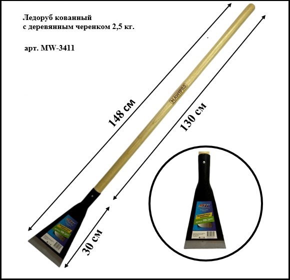 Ледоруб кованый ЛЮКС 2,5кг (175*360мм) с дер.лак.рукояткой, MW-3411 (6) |