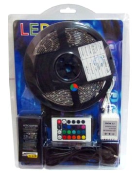 Лента светодиодная 5м СТАНДАРТсамоклеящ.мультиколор пульт д/у МАЛЫЙ блок питания |