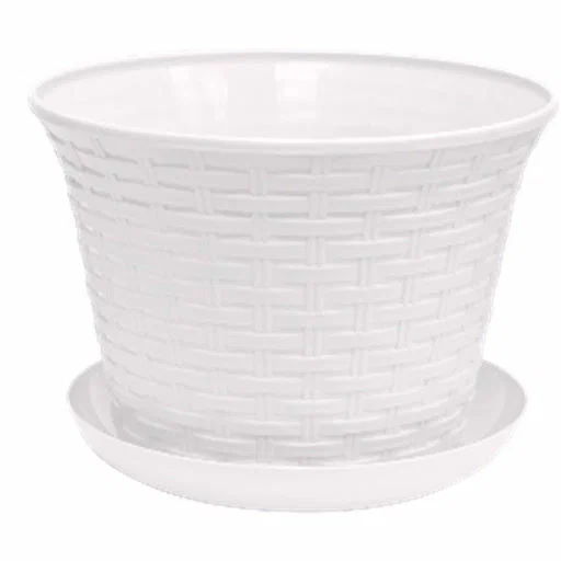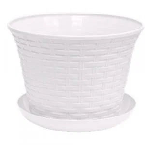 Кашпо круглое 3,0л "Ротанг" с поддоном, белый 363006 |