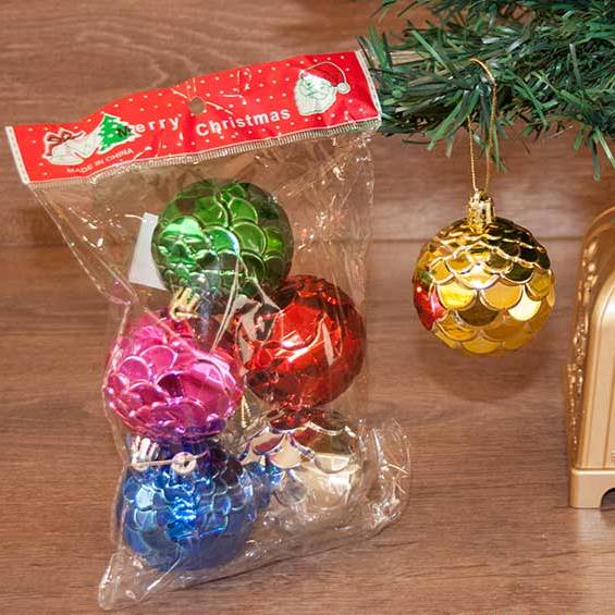 Набор шаров на елку d-6см, 6шт "Чешуя" разноцветные в пакете (BA039) |