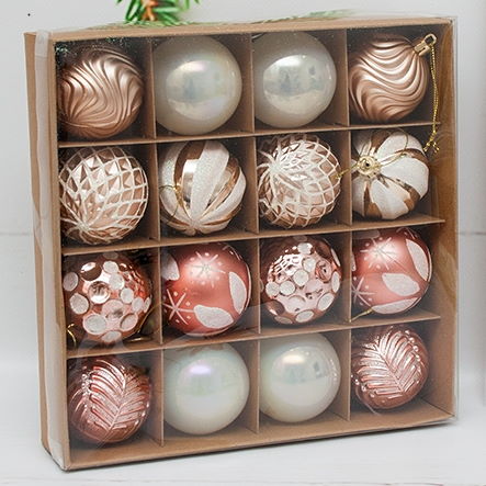 Набор шаров на елку d-6см, 16шт, РОЗОВОЕ ЗОЛОТО в карт. упак. LI31-3Hр.зол |
