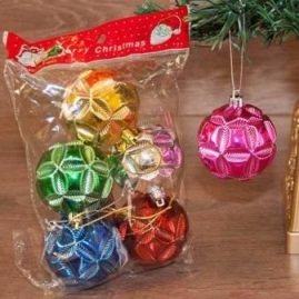 Набор шаров на елку d-6см, 6шт рифлёные разноцветные в пакете (BA032) |