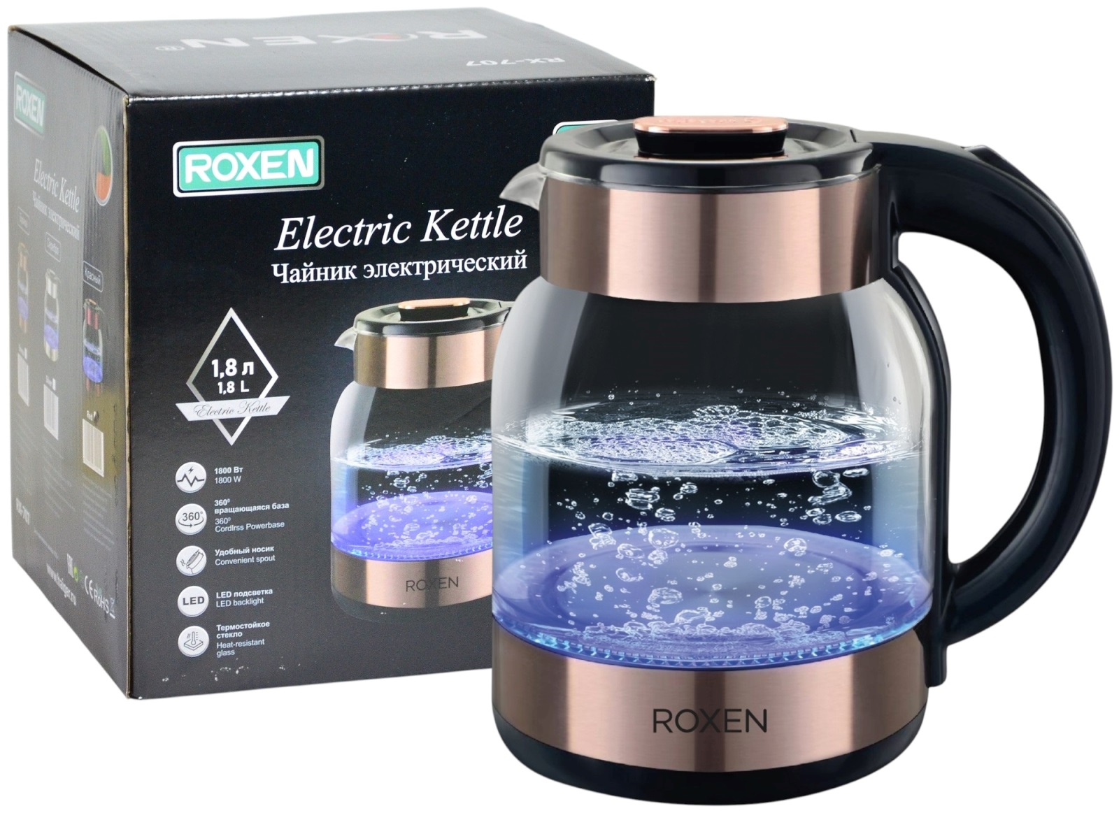 Чайник ROXEN RX-707 Bronze 1800Вт. 1,8л. (12)